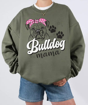 Our Bulldog Mama tee and sweatshirt capture that bold, lovable energy bulldogs are known for. Whether you're lounging at home, walking your pup, or heading to a coffee run, this cozy piece keeps you comfy while showing off your dog mom pride in style.