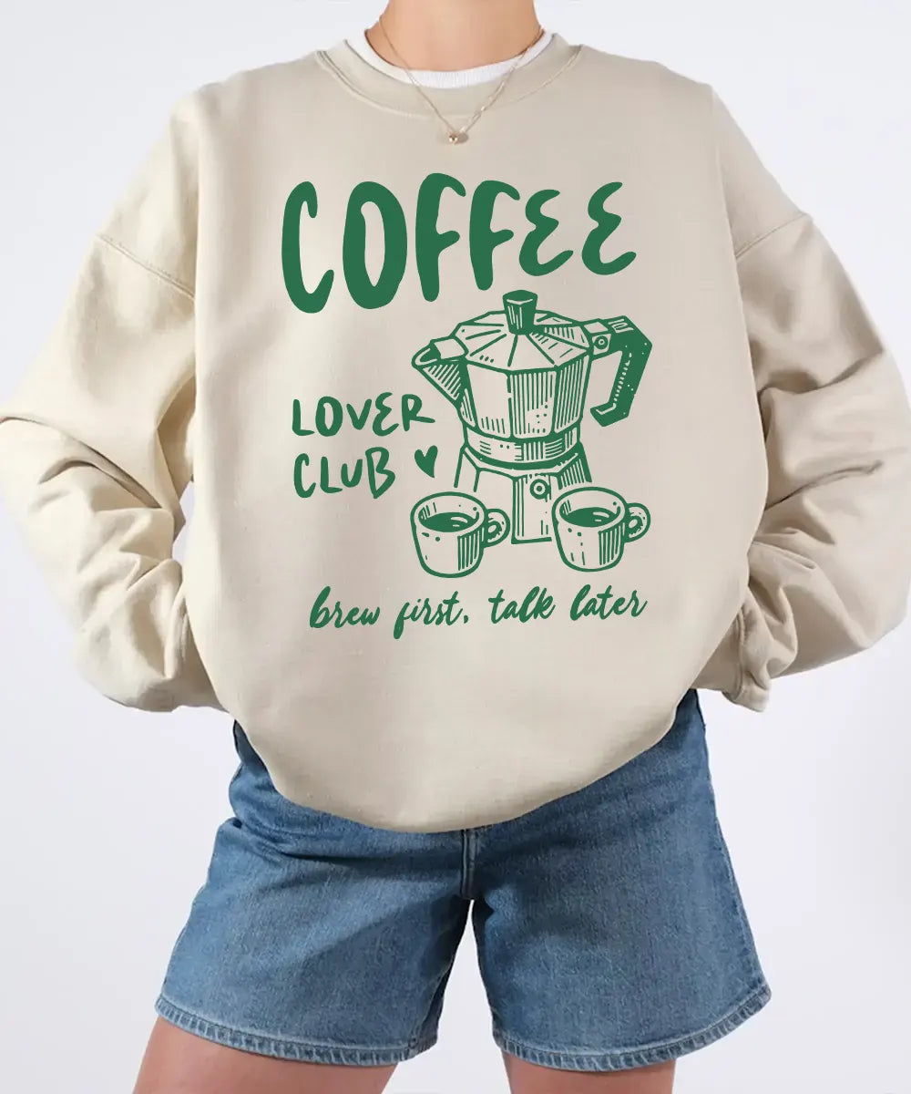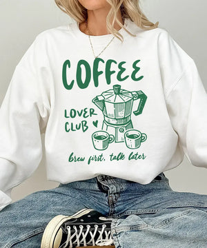 Funny Coffee Lover Club Shirt – Brew First Talk Later T-Shirt or Sweatshirt