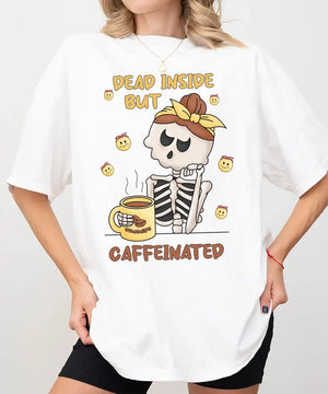 Dead Inside But Caffeinated – Funny Skeleton Mom Tee / Sweatshirt
