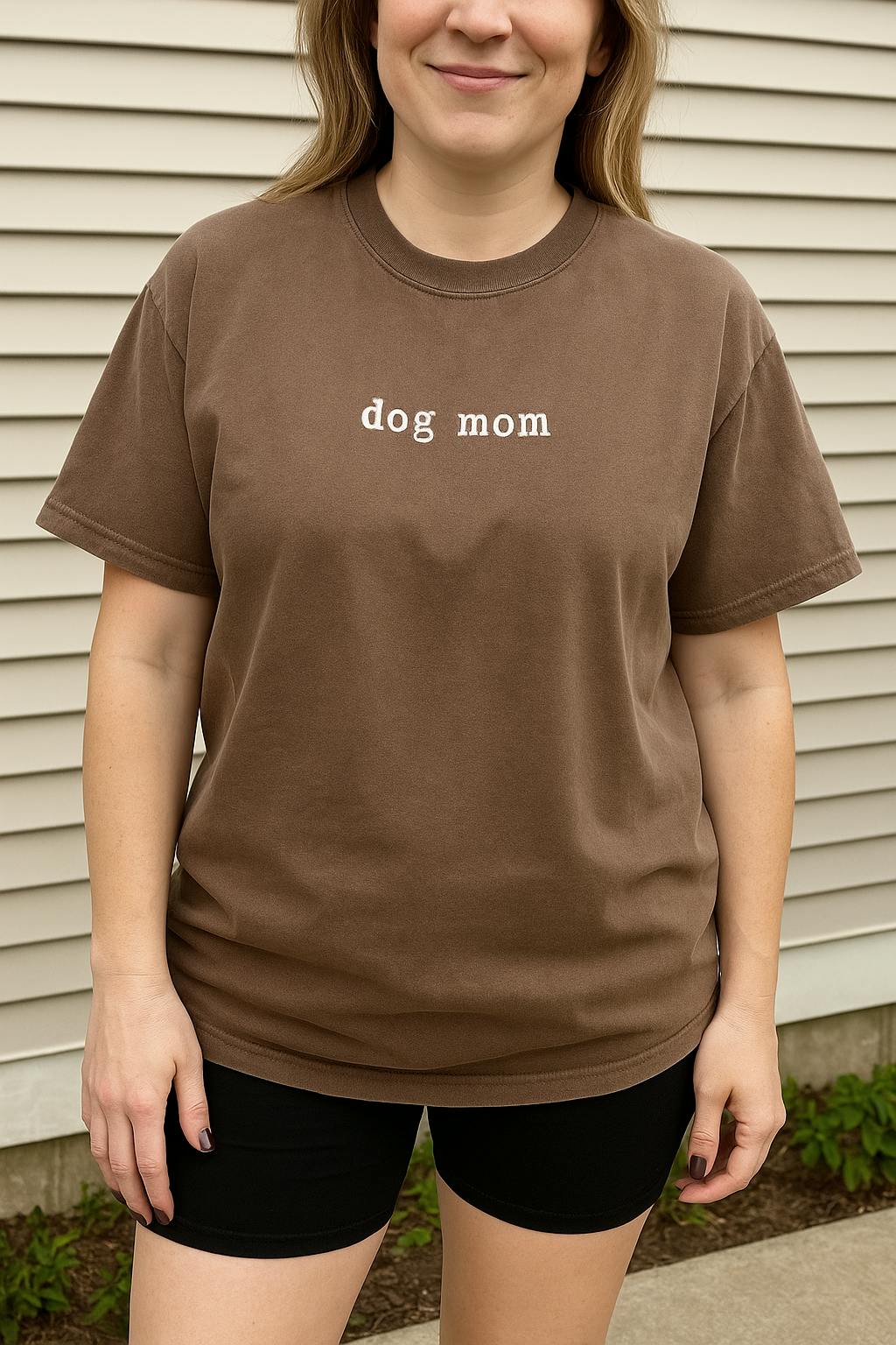 Simple, stylish, and made for every proud pup parent. This minimalist tee features the phrase “dog mom” in lowercase white text across the chest, keeping it clean and understated while still showing off your love for your fur baby. Perfect for walks in the park, coffee runs, or lounging at home with your pup, it’s the ultimate everyday tee for dog moms everywhere.
