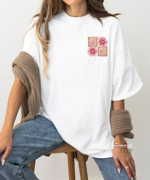 Our Mama Cookie Floral design brings a warm, homey charm with its subtle “pocket print” style — featuring a delicate floral cookie-inspired design that’s both cozy and cute. It’s the perfect mix of playful and minimal, made for mamas who love a soft touch of sweetness in their everyday look.