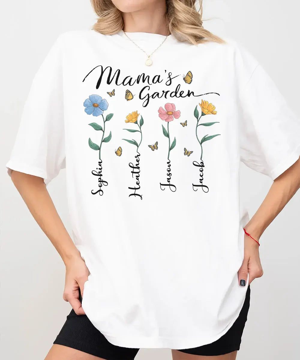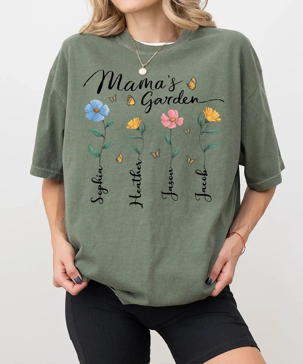 Mama’s Garden Custom Shirt with Kids’ Names – Personalized Floral Mom T-Shirt or Sweatshirt