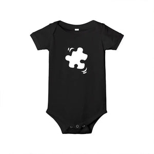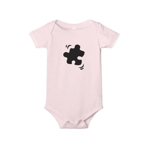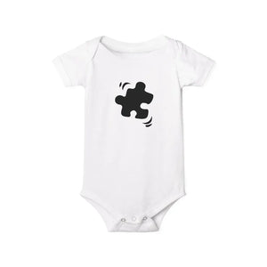 The mama tee features a minimalist heart with a missing puzzle piece, while the baby bodysuit completes the picture with the final piece — because your little one truly is the missing part of your heart.