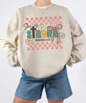 Retro She Is Strong Proverbs 31:25 Shirt – Christian Faith Tee or Sweatshirt for Women
